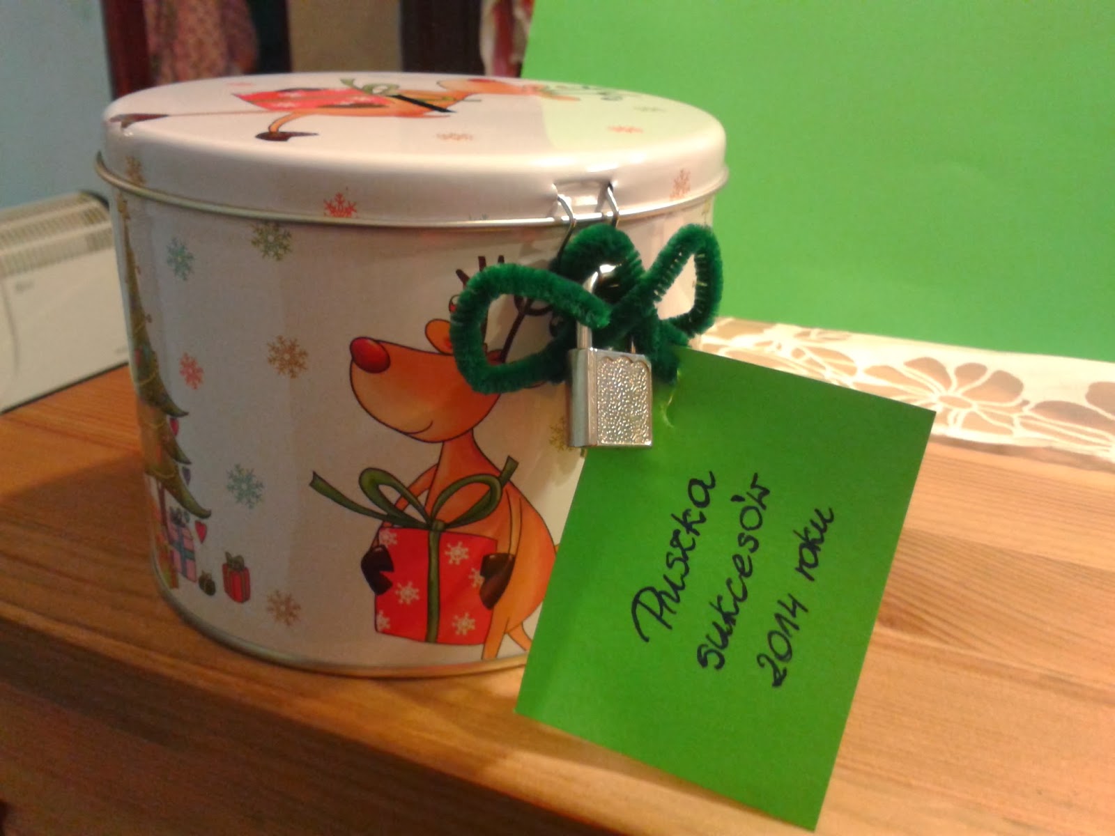 Od paru lat chciałam zrobić słoik, pudełko czy coś w tym stylu na sukcesy całego roku. Przypominałam sobie o tym gdzieś w połowie roku i było za późno. Gdy w grudniu dostałam piękną skarbonkę puszkę nie za bardzo wiedziałam do czego ją wykorzystać. Mam już dwie skarbonki do których wrzucam pieniądze, nie chciałam z nich rezygnować. Piękna nowa skarbonka stała i czekała na wykorzystanie. Tydzień temu pomyślałam, że wykorzystam ją do zbierania sukcesów :).